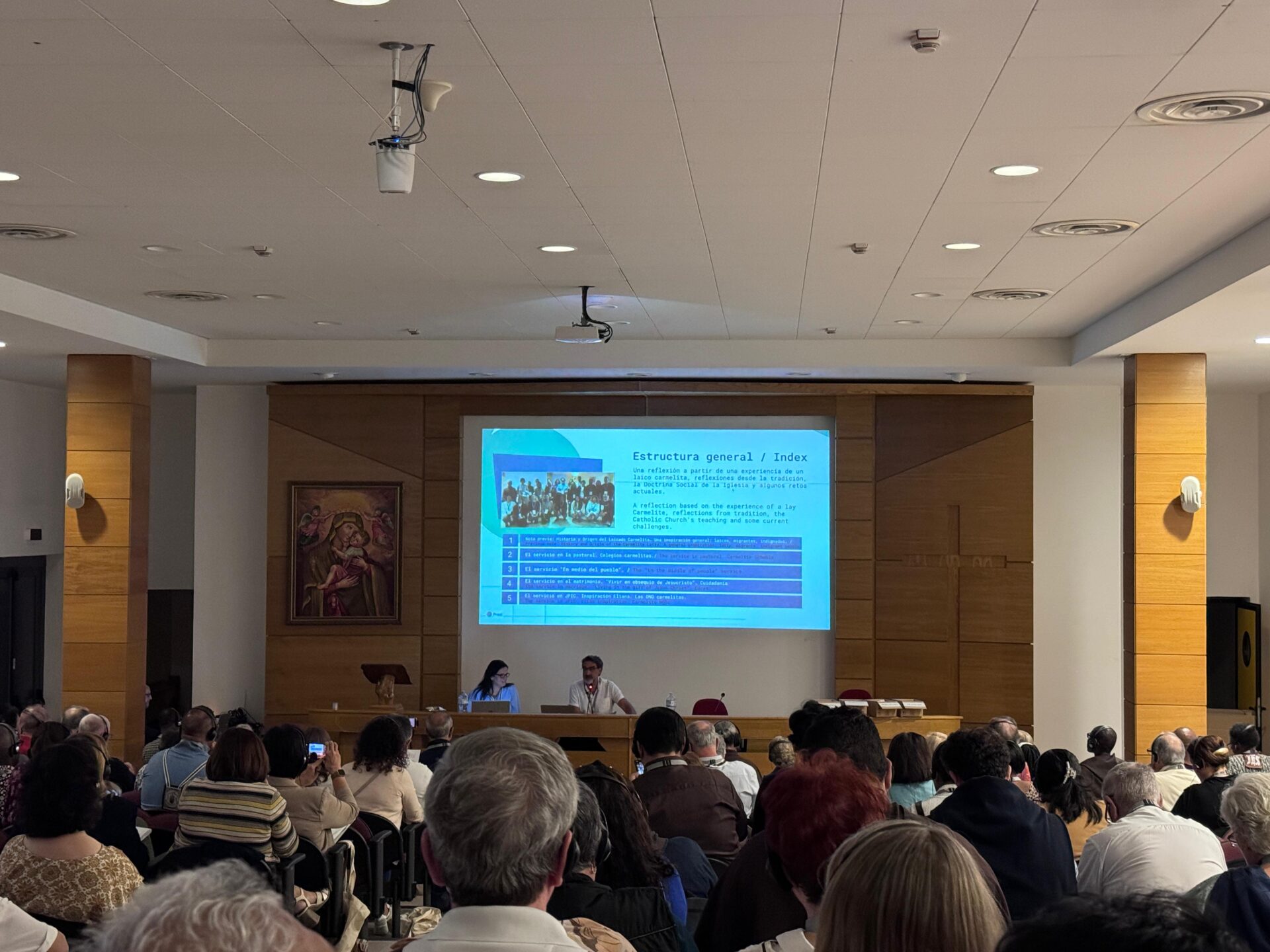 El martes, el vicepresidente de Karit, José Luis Gutiérrez, realizó la ponencia donde reflexionaba sobre encontrarnos juntos en «una Iglesia sinodal y en salida», destacando como cómo las Ongd podemos aportar a la Familia del Carmelo esa sinodalidad y nuestro compromiso por la Justicia, Paz e Integridad de la creación.«Somos familia carmelita. Karit, ha compartido su presencia, vida, mensaje y compromiso ante el Congreso del Laicado Internacional en el que participaron cerca de 200 carmelitas de los cinco continentes. Nuestra opción por un mundo más justo y solidario, es una forma de dar respuesta a lo que se recordaba en los textos de la Orden: “Crece en la Orden el deseo de optar por la solidaridad con los «pequeños» de la historia, de llevar a nuestros hermanos y hermanas una palabra de esperanza y de salvación desde su medio, más con nuestra vida que con nuestras palabras… Recomendamos esta opción por los pobres, porque está en consonancia con el carisma de la Orden”.Recalcamos diversos aspectos de nuestra vida como la ONG de la Familia Carmelita en España. Nuestra historia, valores y contenidos, insistiendo en nuestro carácter sinodal en el que los laicos son protagonistas. Dicha sinodalidad era una de los ejes recomendados por el Congreso para el laicado. Igualmente compartimos las áreas de trabajo, insistiendo en el voluntariado que nos caracteriza a los que trabajamos en las Delegaciones y los que viajan para compartir una experiencia a algún país del Sur; dando el dato que, entre todos, somos ya más de 1000 personas ligadas de alguna manera a Karit: socios, colaboradores y voluntarios. »